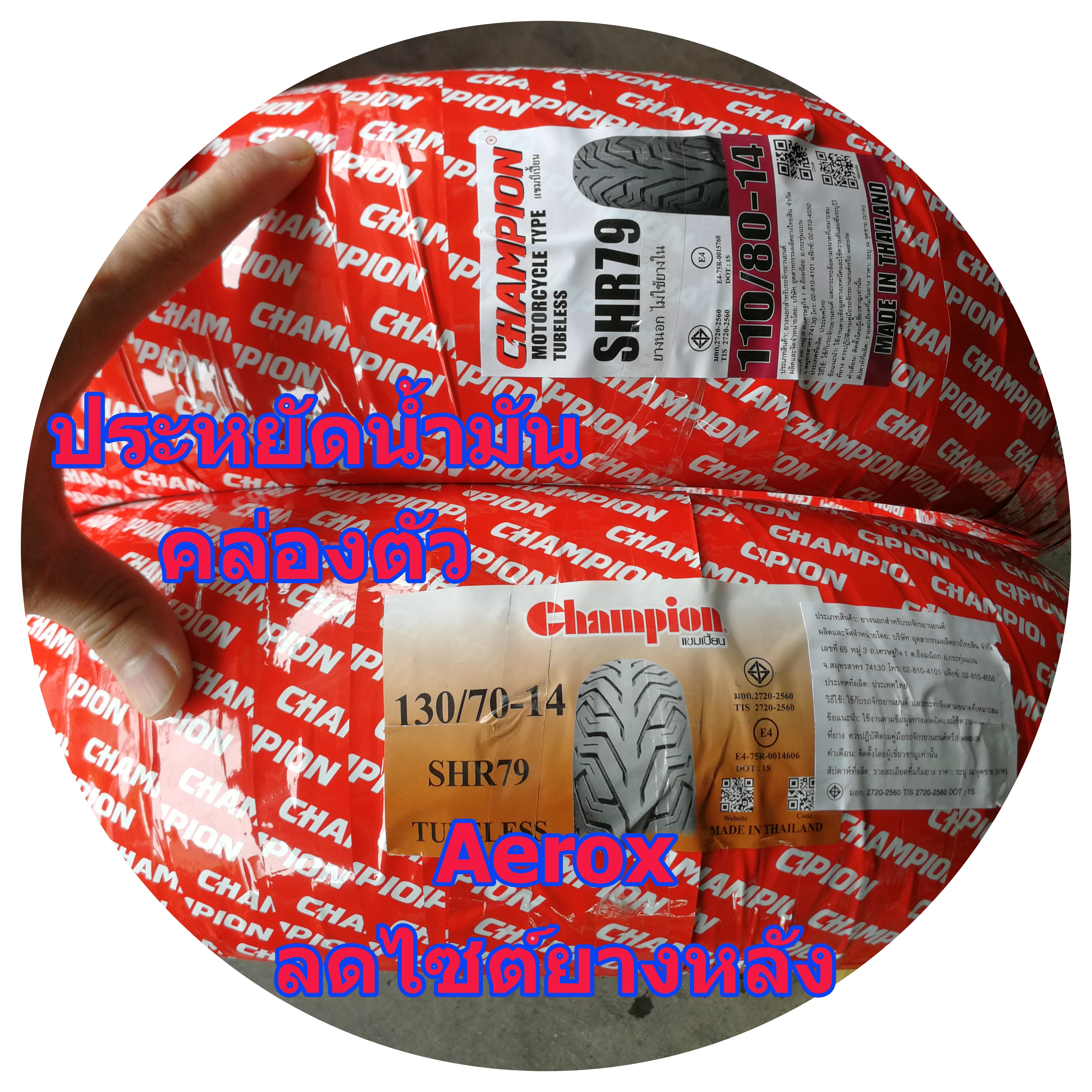 ยางaerox155 YAMAHA AEROX ยางหลังลดขนาด 1 เบอร์ ประหยัดน้ำมันคล่องตัว แอร็อค ยางAEROX ขนาดยางหน้า 110/80-14TL(120/70-14), ยางหลัง130/70-14 TL Champion